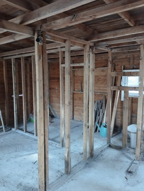 Sanierung einer Badehütte - Kleines Haus am Donau-Oder-Kanal wird entkernt. Wir