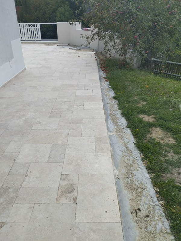 Aktuell wurde die Terrasse komplett saniert. Als Belag wurden Natursteine gewählt.